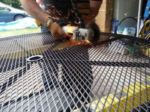 Положите столешницу левой стороной кверху. Необходимо измерить длину внутреннего круга. Туда будет привариваться металлический борт. Если диаметр отверстия составляет 61 см, то вам необходима металлическая полоска 76 см в длину, шириной 13 мм.