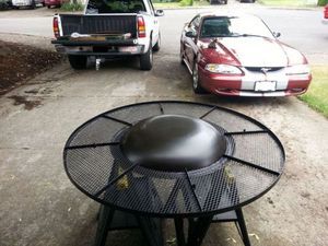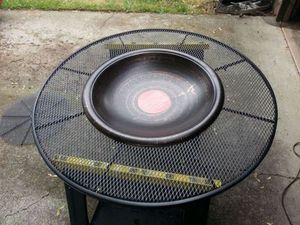 Также необходим металлический садовый столик и металлический котел, который будет использоваться в качестве места для костра. Этот котел можно заменить алюминиевой кухонной чашей.
