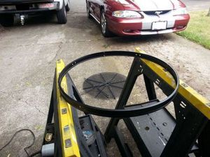 Если на поверхности металла есть ржавчина, то отчистите ее. После того, как металл будет блестеть, вы можете начать гнуть его в круг. Когда Полоска примет форму круга можно использовать зажимы, чтобы удержать ее на внутренней части отверстия.