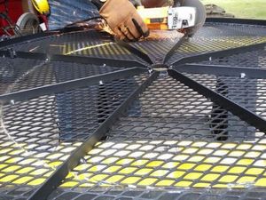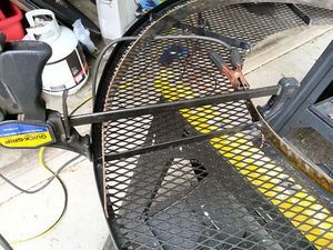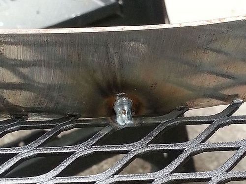 Используйте зажим, чтобы крепко удержать кромку внутреннего круга. Затем приварите металлическую полосу.