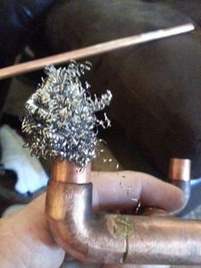 Очистите поверхность и внутреннюю часть труб с помощью металлической губки для посуды.