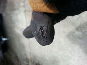 Всегда помните о правилах безопасности. Автор данного мастер-класса пренебрег этими правилами и сжег себе палец, а затем раскаленный кусочек металла попал ему в глаз. Все обошлось без сильных повреждений.