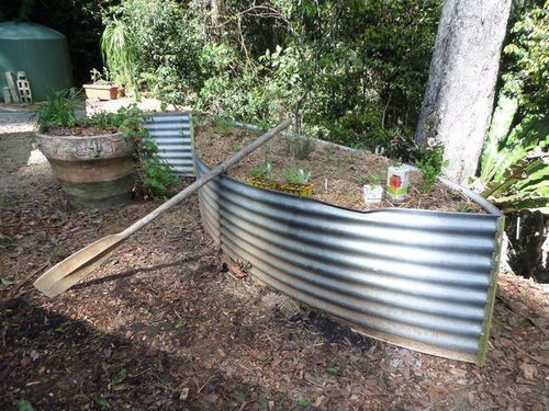 Огромные цистерны в 23,000 л со временем выходят из строя. Они начинают ржаветь и в них появляются дыры. Их очень трудно перерабатывать и они обычно лежат мертвым грузом. Можно сделать из цистерны форму для овощных грядок. Из одного огромного бака получается 6 симпатичных грядок в виде лодки.