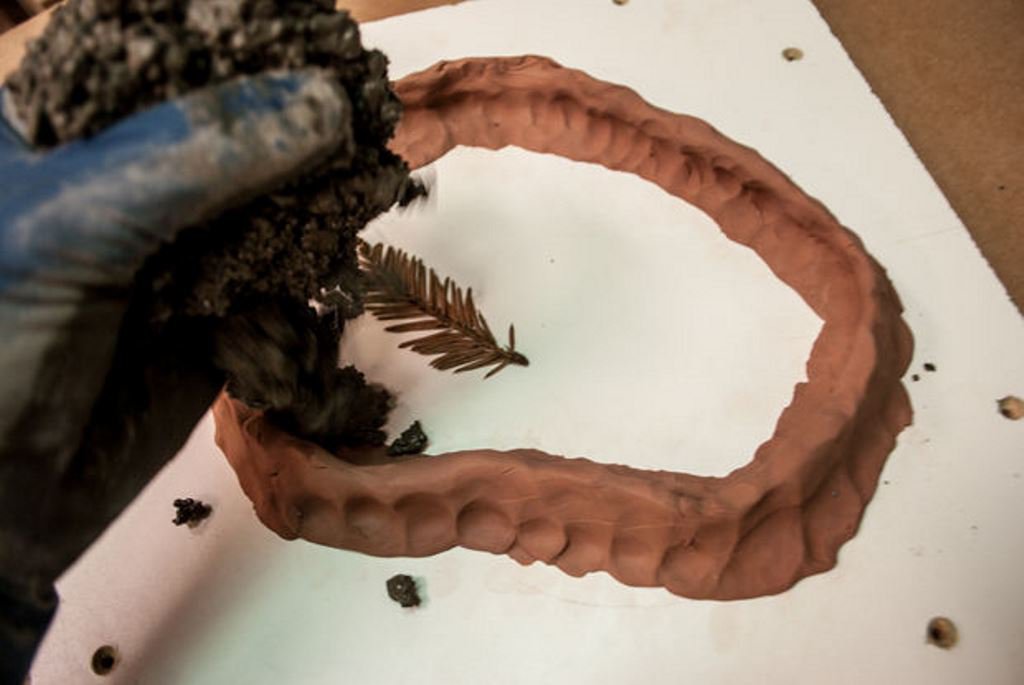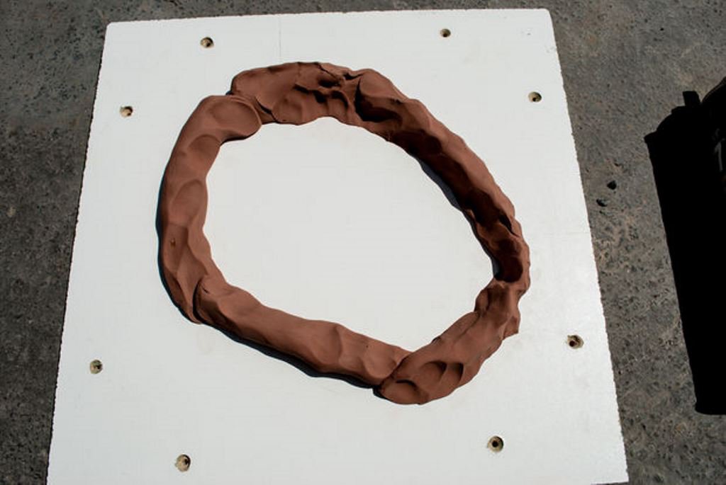 Возьмите пластилин и прикрепите его к гладкой поверхности. У вас должны получиться пластилиновые стенки в форме круга.