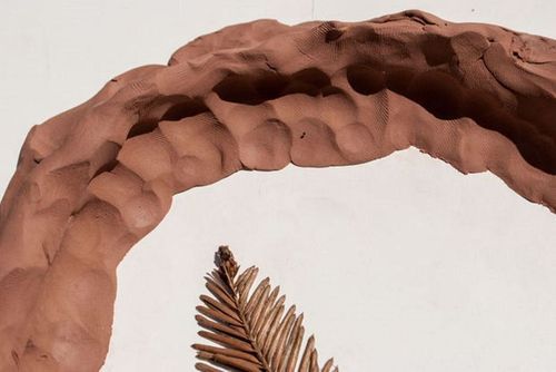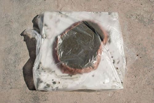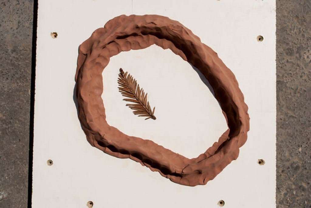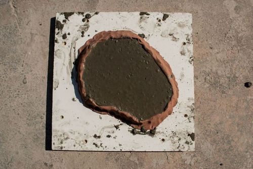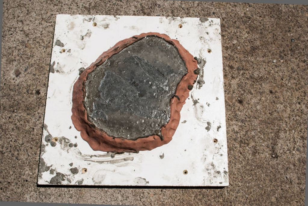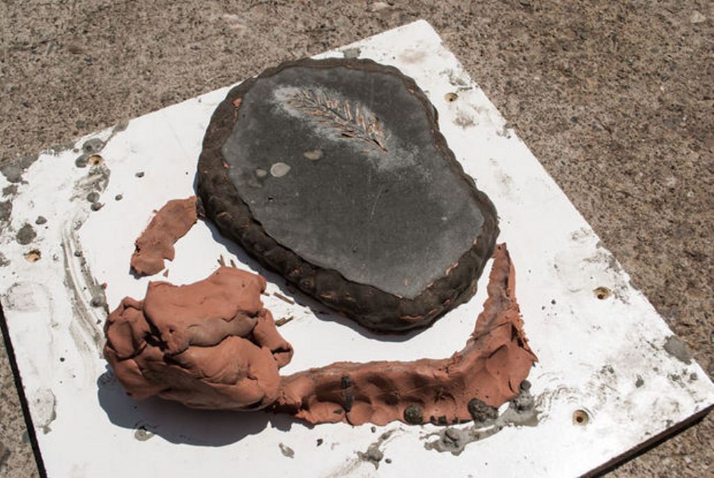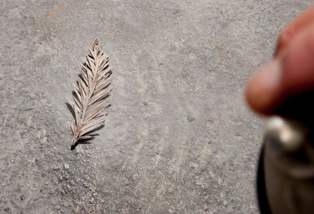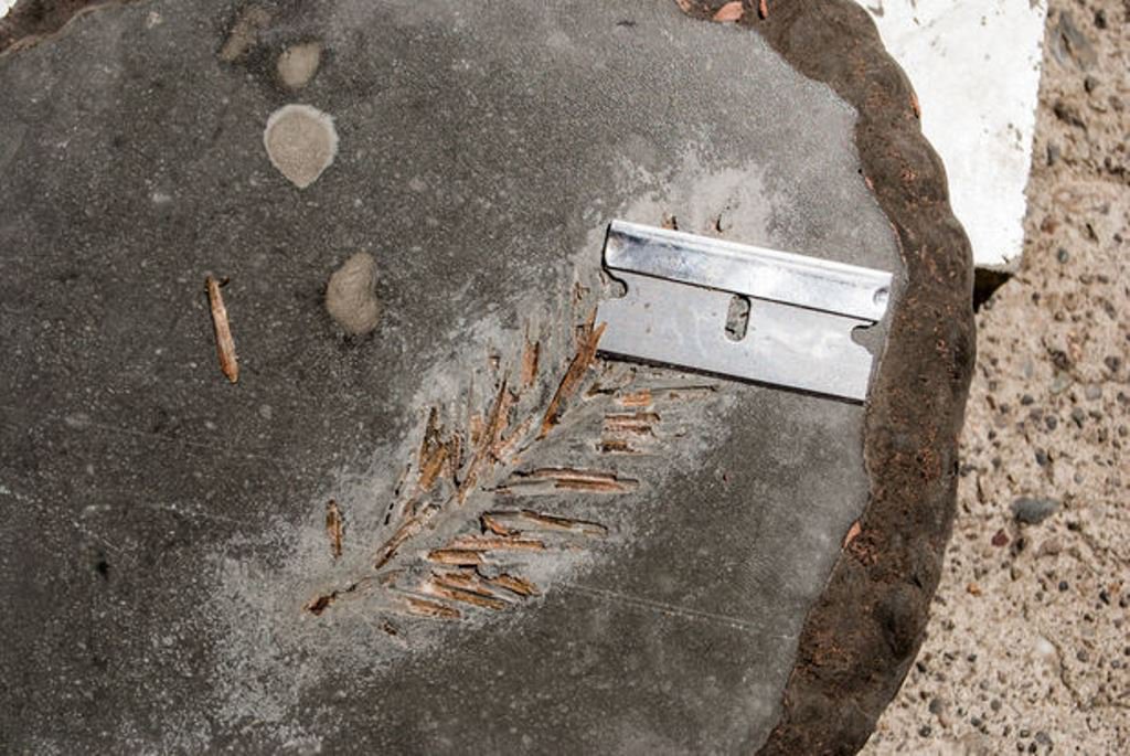 Теперь необходимо удалить листок из бетона. Серая область вокруг листа является результатом всасывания влаги листом. Если бы использовался свежий листок, то поверхность была бы однотонная.