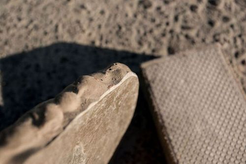 Обработайте края бетона наждачной бумагой. Затем можно нанести на ископаемое воск.