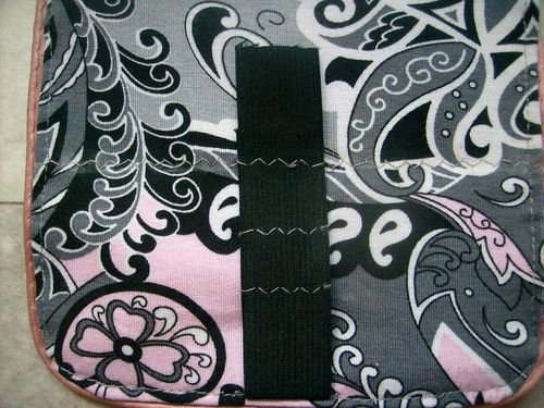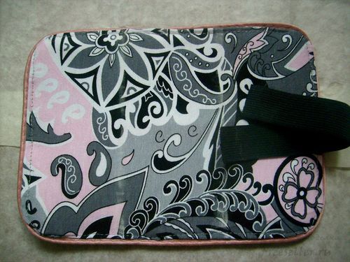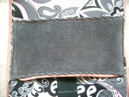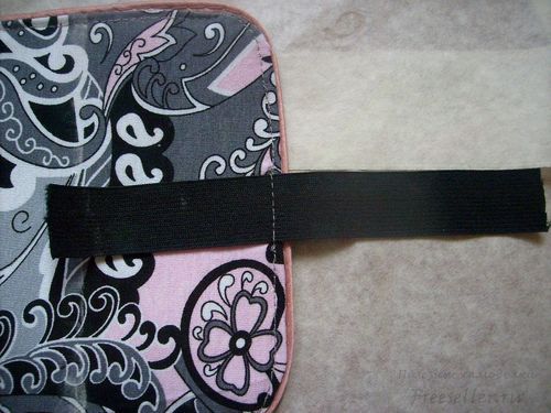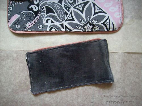 пристрачиваем, отложив 8 см, к изнанке косметички посередине нижней стороны в шов стачивания верха с подкладкой.