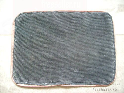 8. Выкраиваем карман размером 7 на 15 см. Шьём его так же, как основу - верх, подкладка, кант. Но кант вшиваем только с одной длинной стороны.