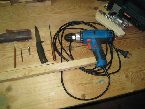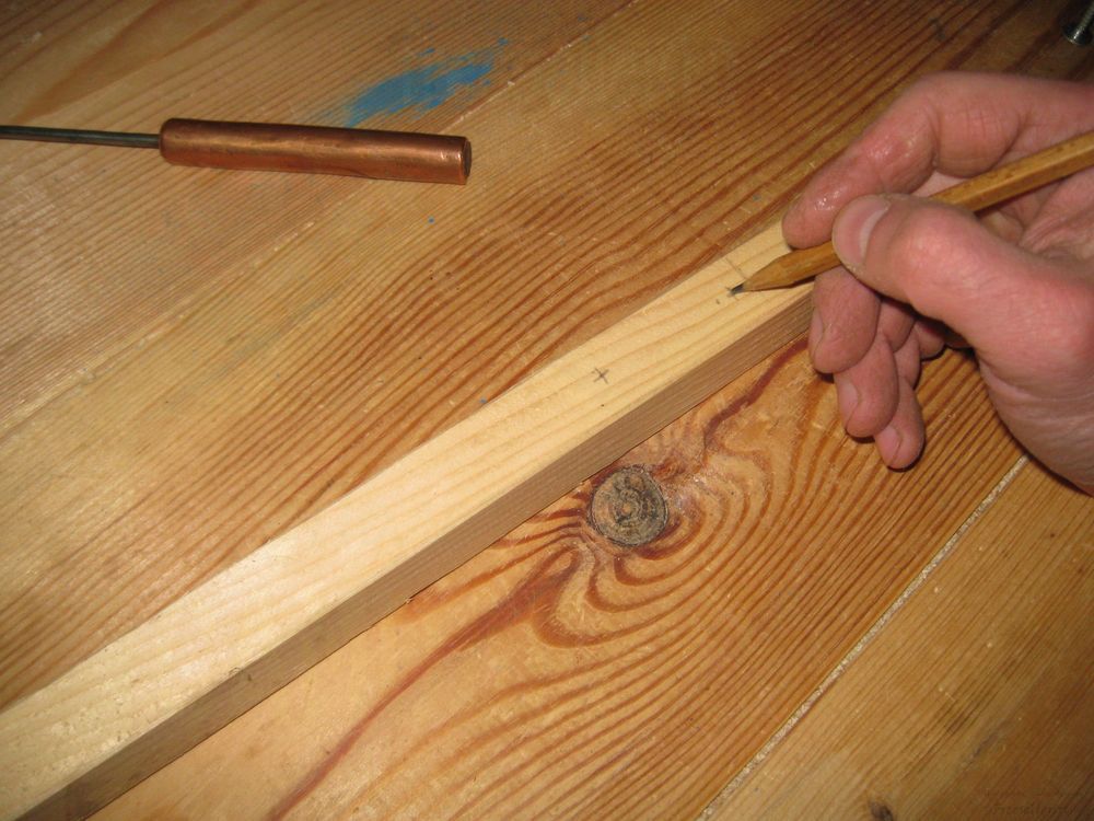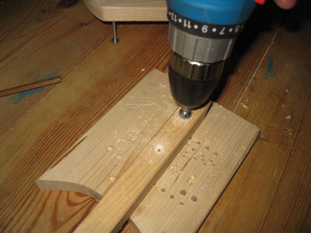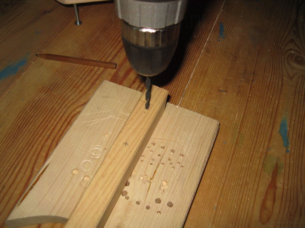 После этого накалываем центры будущих отверстий шилом и высверливаем их.