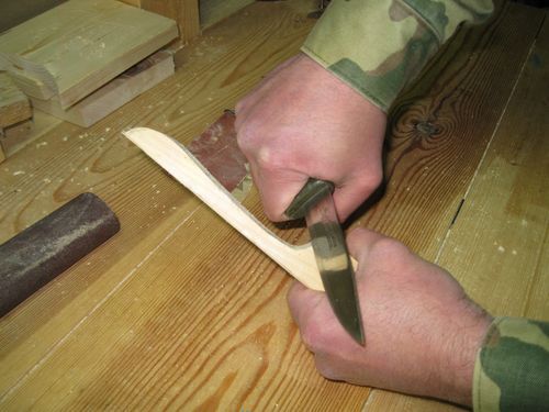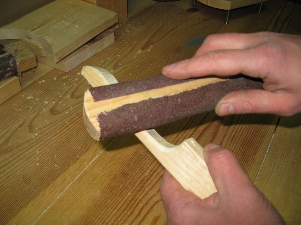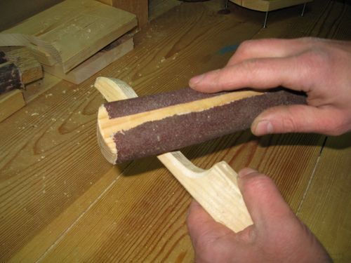 Не стоит забывать, что вешалка должна быть максимально гладкой, поэтому ее обработку ножом и наждачной бумагой надо производить очень тщательно.