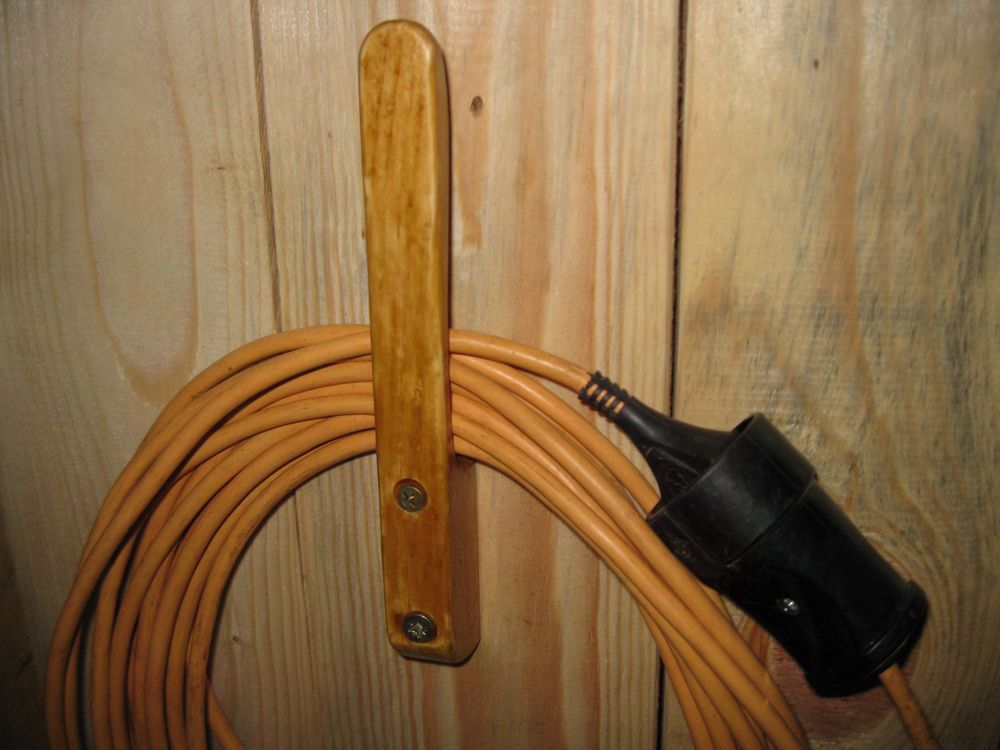 Например, очень удобно вешать на эту вешалку мотки проводов или удлинители.