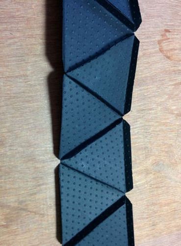 Теперь необходимо сделать по всей поверхности треугольников отверстия. Легче всего сделать эту работу с помощью специальной машинки, которая показана на фотографиях.