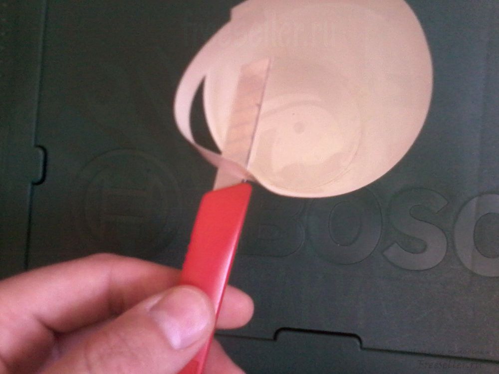 Приклеиваем к сбоку отрезок клейкой бумаги, и обрезаем все лишнее.