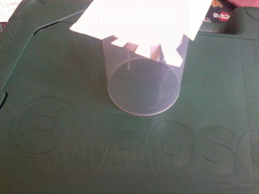 Делаем надрезы в виде солнышка и приклеиваем излишки к бокам баночки.
