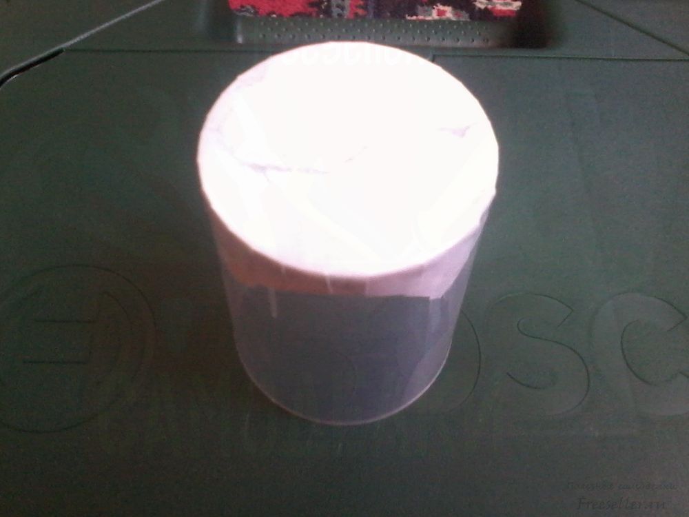 Берем в прямые руки небольшой, заранее приготовленный, кусок клейкой бумаги, вырезаем ножницами квадратик (кружочек), чуть больше дна баночки и приклеиваем его к ней.