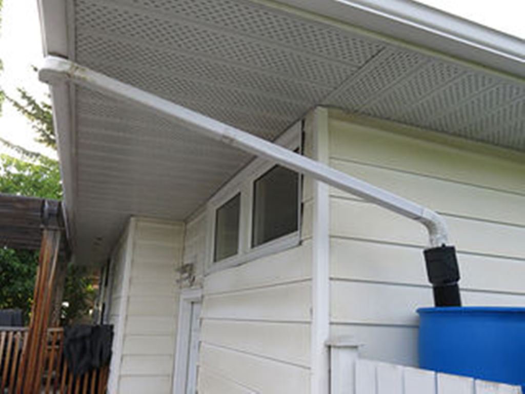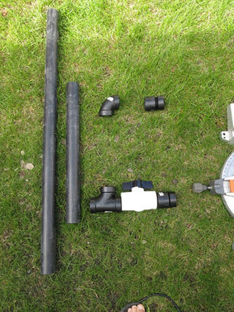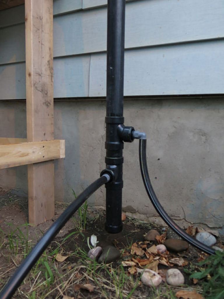 Труба крепится к верхней части бочки. Позаботьтесь о том, чтобы и труба, и бочка были защищены от листьев, которые могут загрязнить систему.