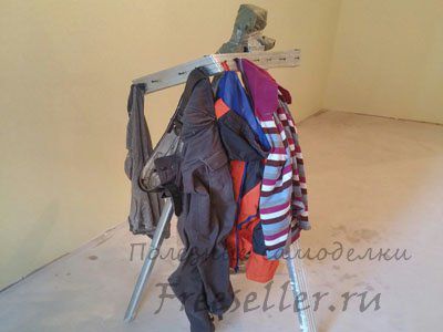 В продолжение темы строительных гардеробов, хочу предложить еще один вариант изготовления переносного гардероба вешалки из подручных средства.