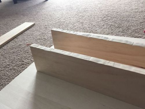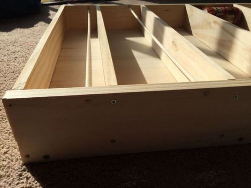 Каркас представляет собой 4 боковых стенки с основание из фанеры или широкой доски. Для соединения элементов использовался столярный клей и саморезы.