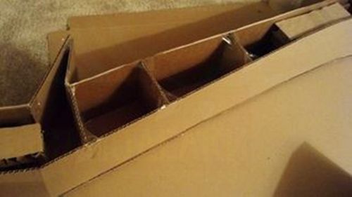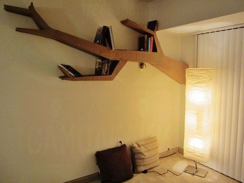 Если у вас есть ненужные коробки из гофрированного картона, то можно сделать удивительную полку. В эту работу невозможно не влюбиться, так как она сделана своими руками. Гигантский картонный короб, из которого недавно доставили новый диван, послужит идеальным материалом для данной самоделки.