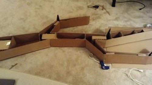 Набросайте понравившийся замысел, а затем будьте готовым вырезать будто сумасшедший! Используйте канцелярский нож, монтажный нож, ножницы, все, что есть под рукой. Предпочтителен мощный канцелярский нож. Рекомендовано часто менять лезвие, чтобы сохранить собственные силы т.к. картонный коробок быстро затупляет лезвия.