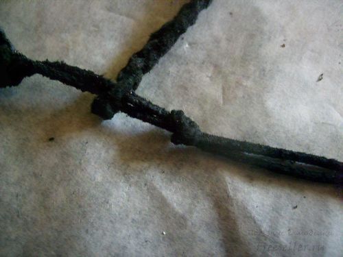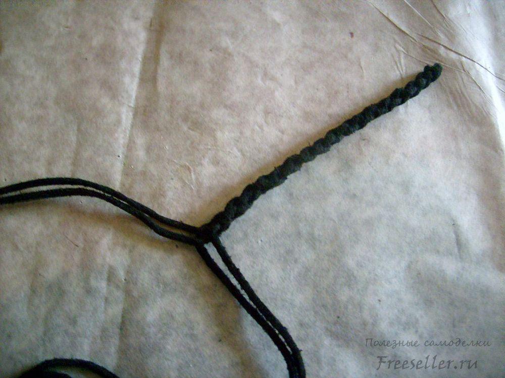 1. Плетём из двух отрезков кожаного шнура толстый "круглый" шнур. Вот такой - Плетём двухцветный функциональный шнур.