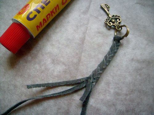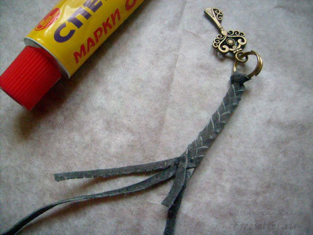 Такой подвеской можно украсить сумку, кошелёк, другое изделие из кожи или замши.