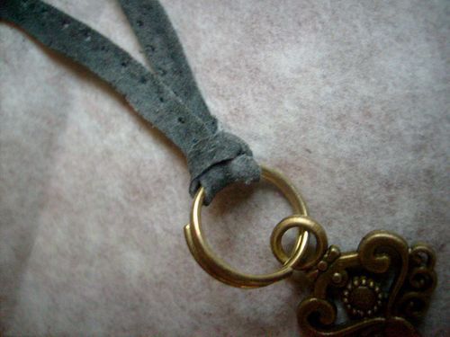 2. Крепим на кольце сложенную вдвое полоску замши шириной около 2 мм.