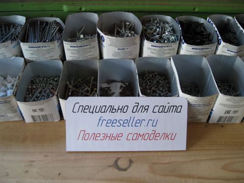 Конечно, для этих целей можно изготовить какие-нибудь ящики, с множеством ячеек, или, допустим, купить уже готовые. Однако такой вариант достаточно затратен и по времени и по финансам. Кроме того, как показывает опыт, сколько ни делай отделений или ячеек в ящиках, все равно их потом не хватит на весь разнообразный крепеж и другие мелочи.