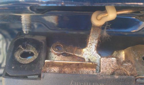 В итоге было принято решение поставить соленоид именно на сам крючок внизу, а не просто на замок. Тем более обнаружил там уже готовое отверстие под это дело.
