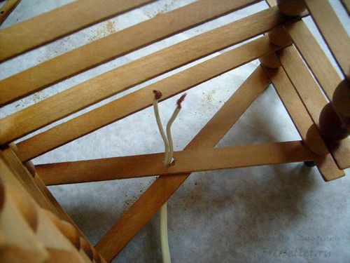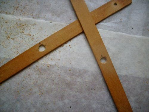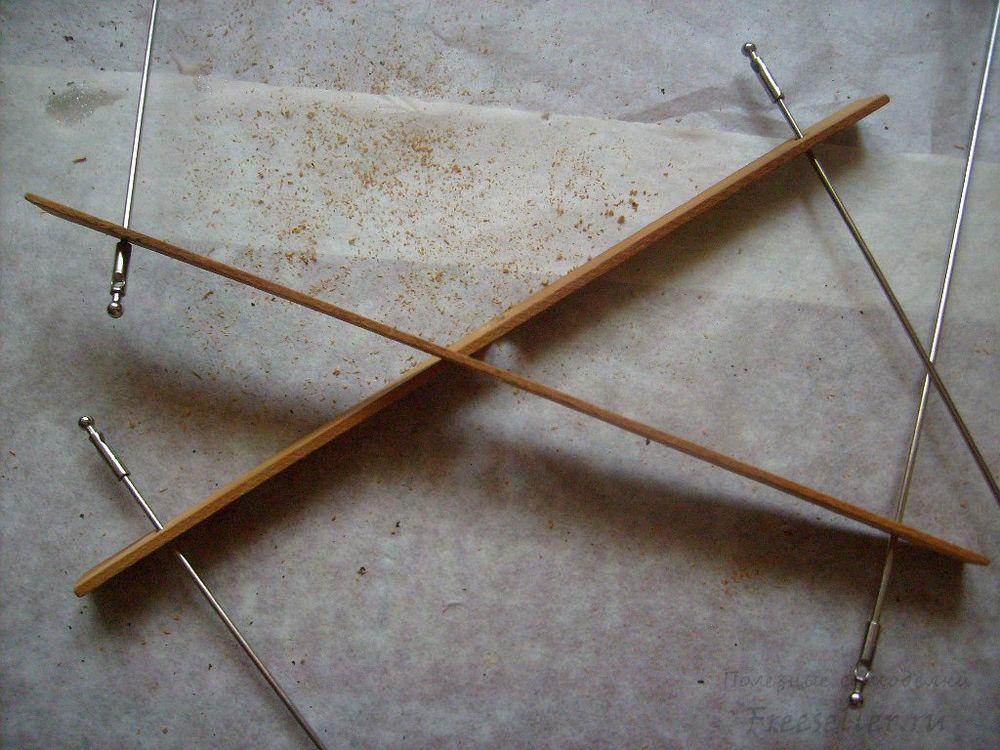 Сложенные крест-накрест и надетые на спицы две такие планки станут основанием корпуса нашего светильника.
