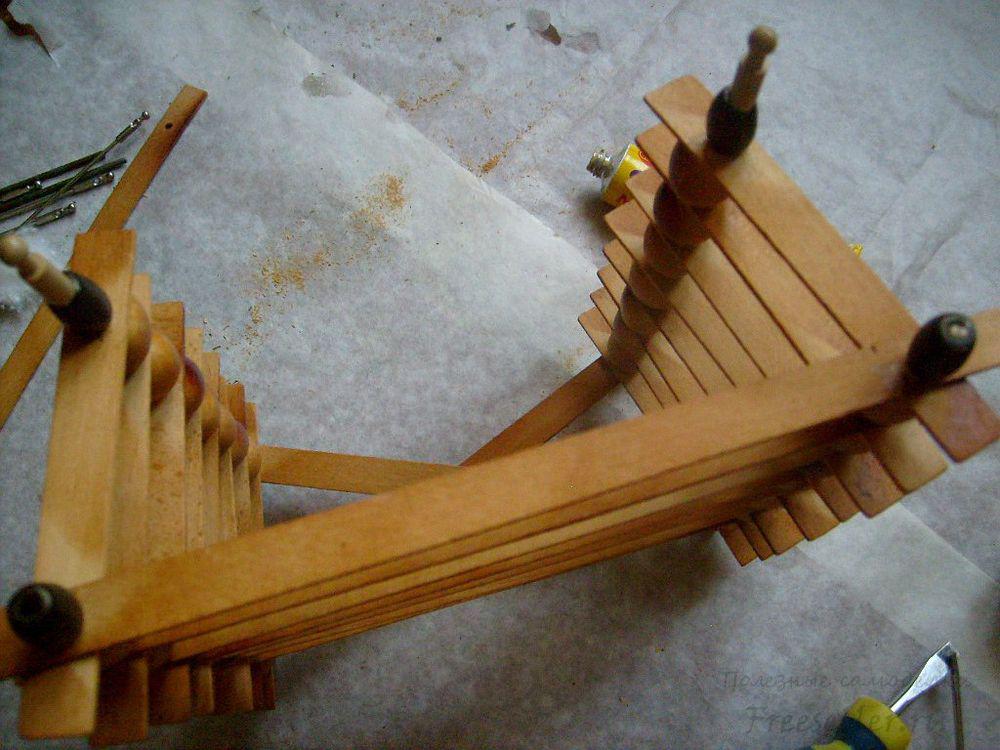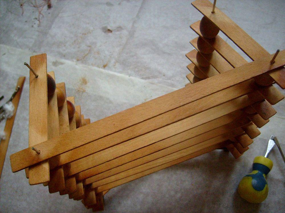 2. А далее собираем корпус, нанизывая на спицы по две короткие планки и по одной длинной.