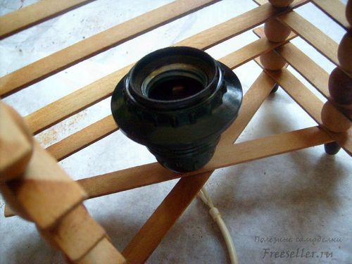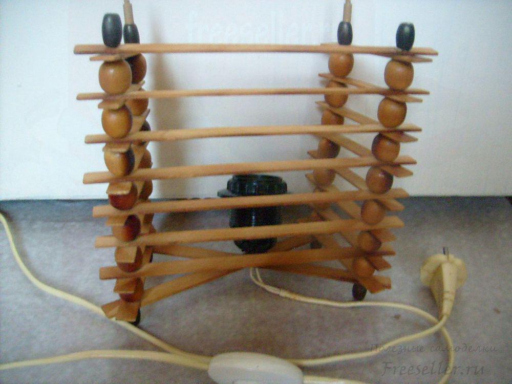 Наш светильник экологичен - собран из деревянных планок и бусин, да к тому же очень прост в конструировании.