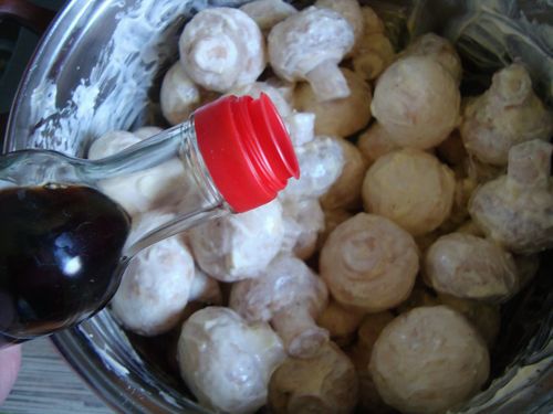 Перемешайте все деревянной лопаткой и дайте грибам замариноваться около 2 часов.