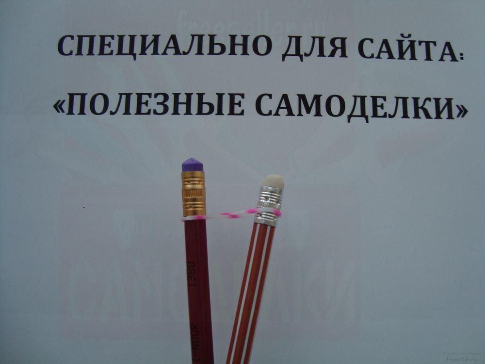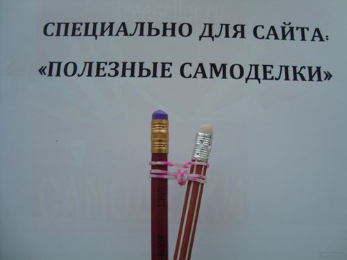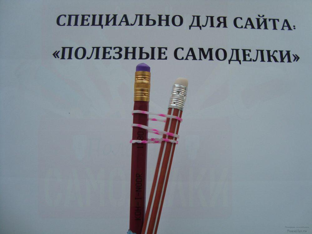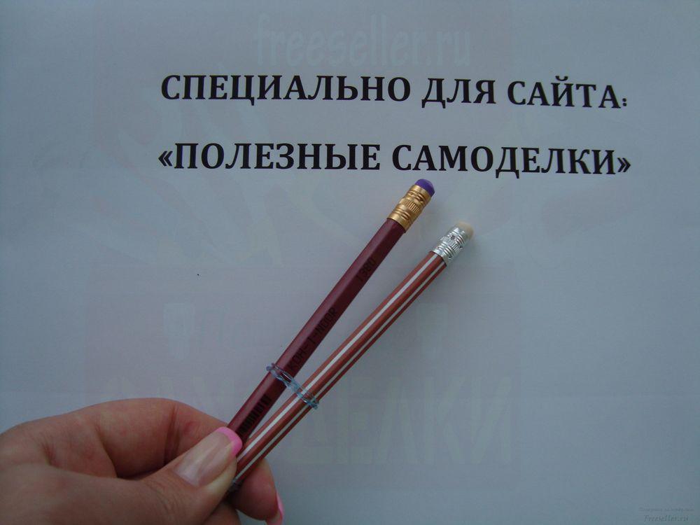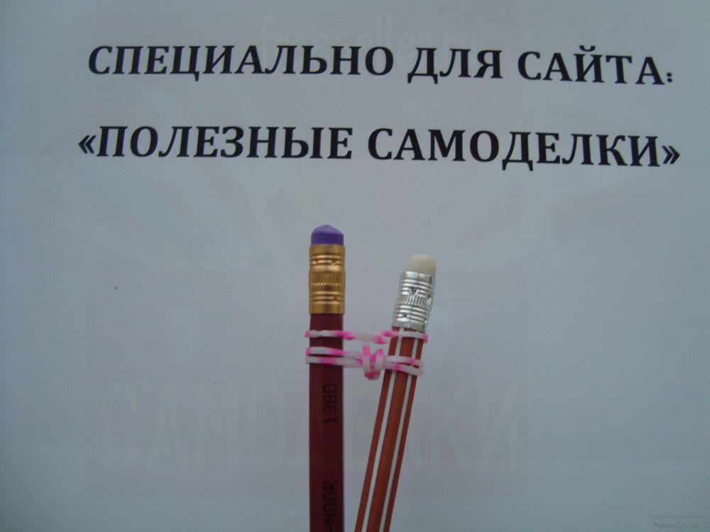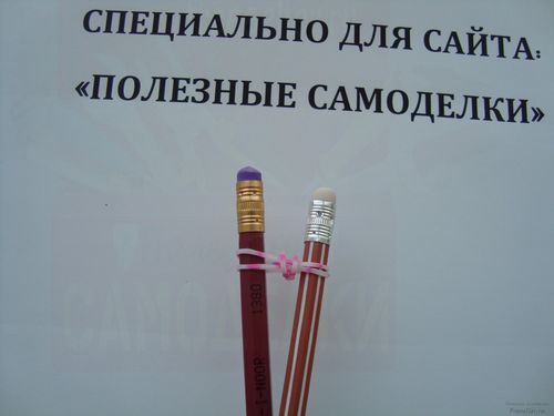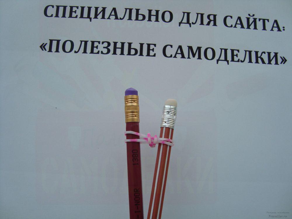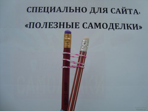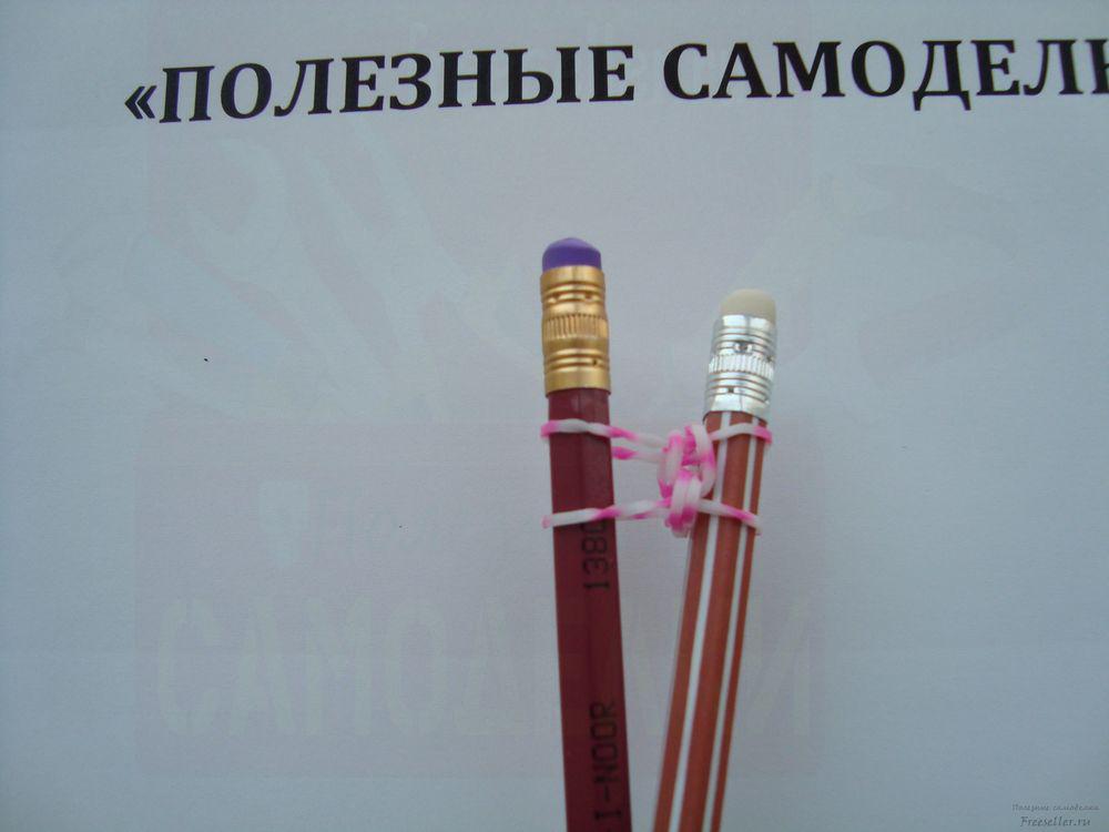 Скрепите карандаши так, чтобы между верхними краями был небольшой зазор. Нижние концы можно скрепить вместе, для фиксации воспользуйтесь резинками иным цветом, чтобы не запутаться.