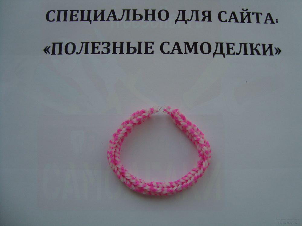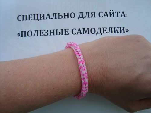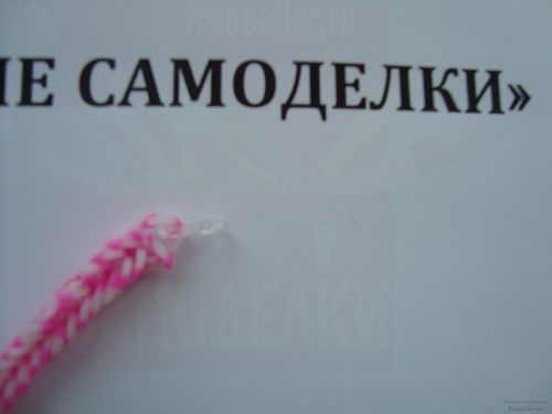 Первая резинка будет иметь вид восьмерке, такой перекрест при ее надевании позволит, не распустится браслету в дальнейшем.