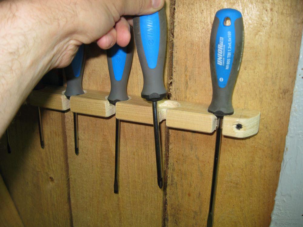 Самодельный держатель для отверток, весьма несложный в изготовлении и удобный в эксплуатации.