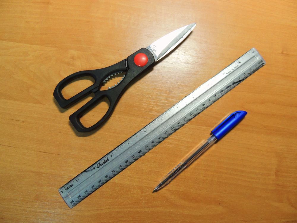 Размечена форма при помощи ручки, линейки, вырезана форма при помощи ножниц.