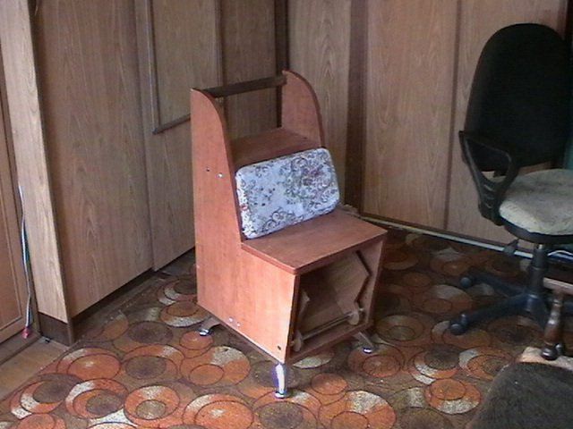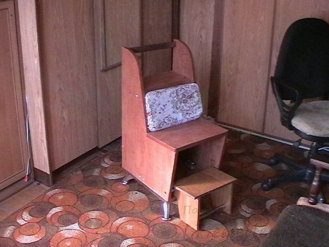 Самодельное кресло-лесенка с откидной ступенькой и колесами для транспортировки.