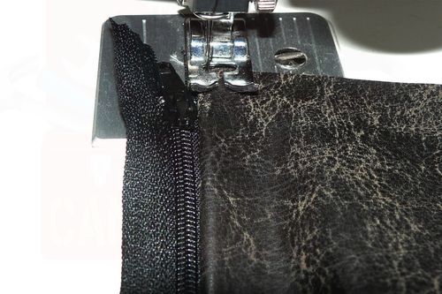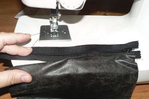 Раскройте молнию полностью. Сложите чехол вдвое и прострочите вторую сторону молнии, приложив ее ко второй стороне чехла.
