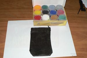 Возьмем черную краску и прямо пальцем нанесем ее, как следует, втирая, на поверхность чехла со всех сторон.