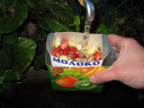 И тут я заметил один интересный момент. Многие взрослые, да и дети тоже, не моют собранные для еды ягоды не потому, что не знают, что это надо делать, или просто не хотят, а потому, что зачастую это очень неудобно делать в саду, а идти ради этого домой, просто не хочется. Да и удобной тары для мытья под рукой не имеется.