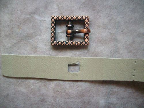 2. По разметке выполняем в самой длинной кожаной полоске прорезь под штырёк пряжки.