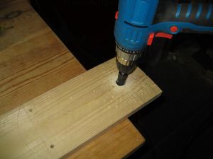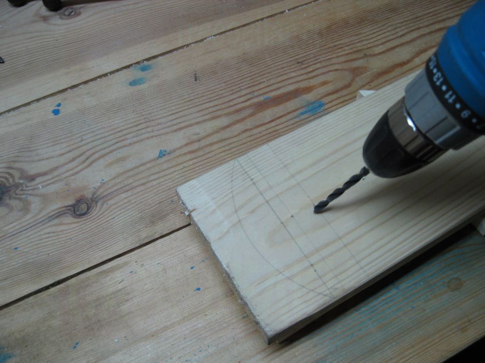 Кольцевой пилой по дереву, выпиливаем отверстия будущих навесов.