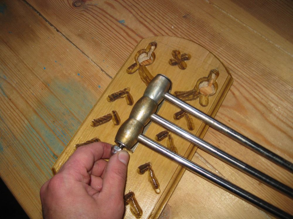 Теперь крепим к ней скобу вешалки с помощью двух шурупов с пресс шайбой.