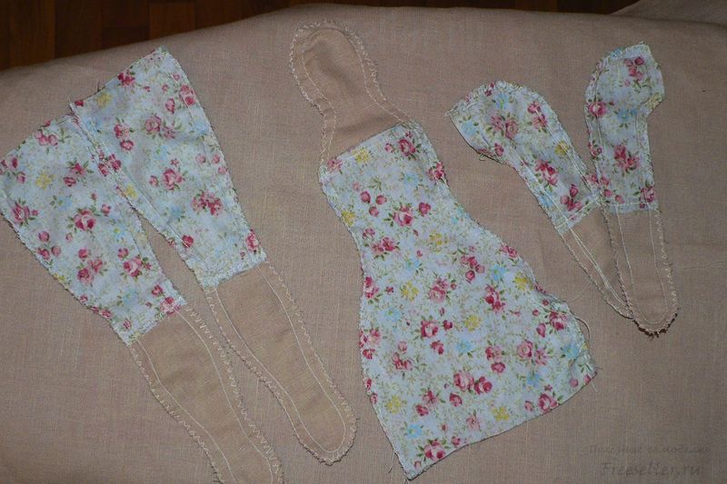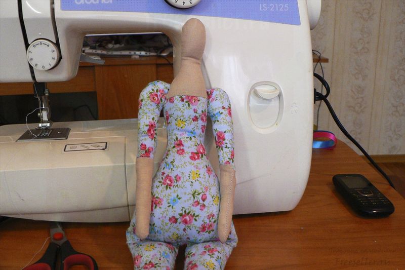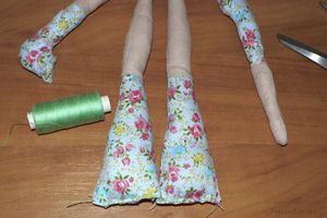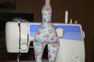 Вставляем ноги в туловище, вручную прошиваем, можно пристрочить и на машинке. Пришиваем ручки.