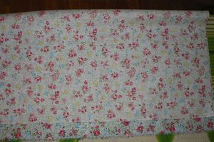 Берем телесную ткань и сострачиваем ее с цветастой по ширине, обрабатываем шов зигзагом. Проглаживаем на изнанке и лицевой стороне.