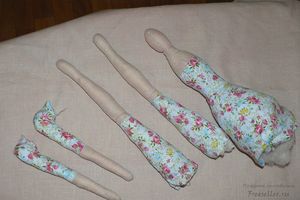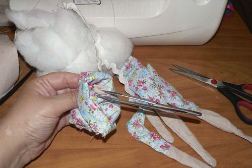 Так же при помощи пинцета набиваем детали синтепоном, отрывая по небольшим кусочкам.