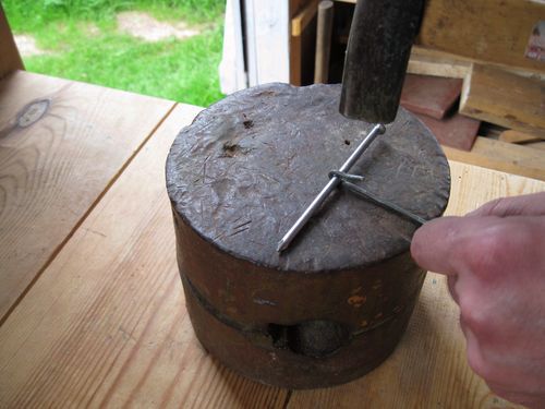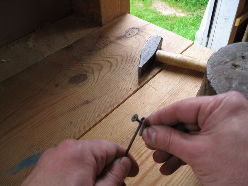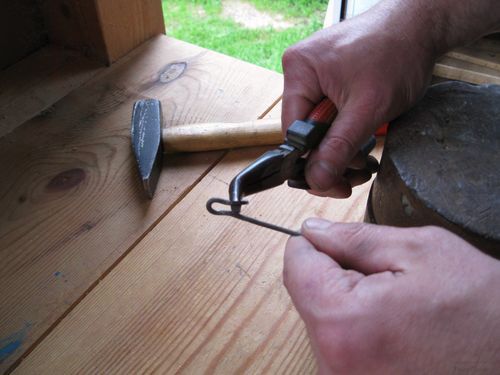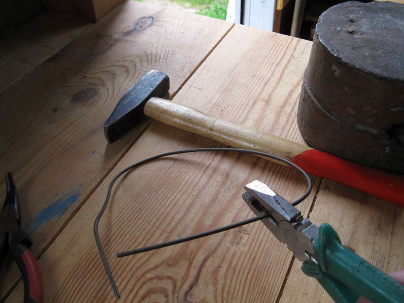 Сначала откусываем пассатижами отрезок проволоки необходимой длины и если надо выравниваем его молотком на наковальне.