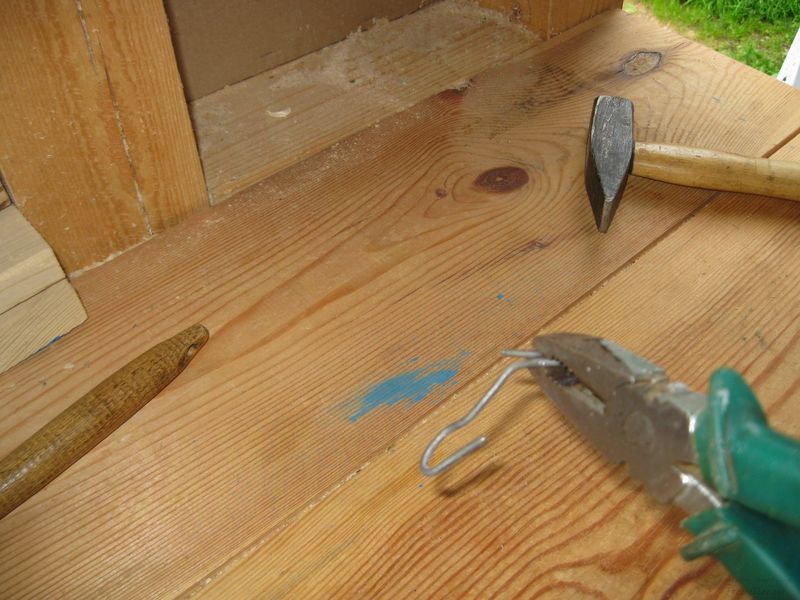 Маленький крючок для шурупа немного отгибаем в сторону для удобства подвешивания на нем мелких деревянных деталей.
