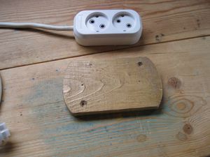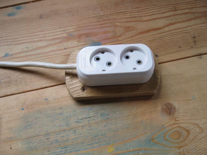Эту дощечку я изготовил в качестве основы для установки на нее колодки удлинителя, чтобы ее можно было закрепить на стене, а в случае необходимости быстро снять.